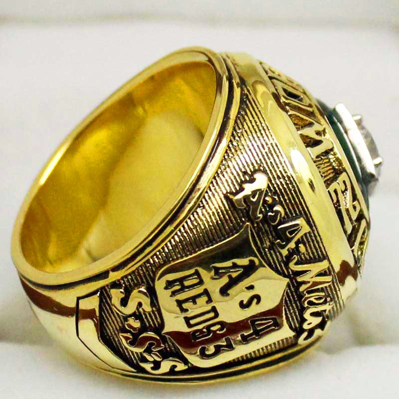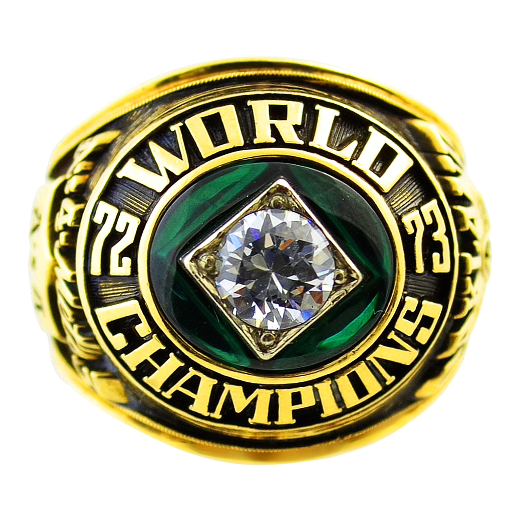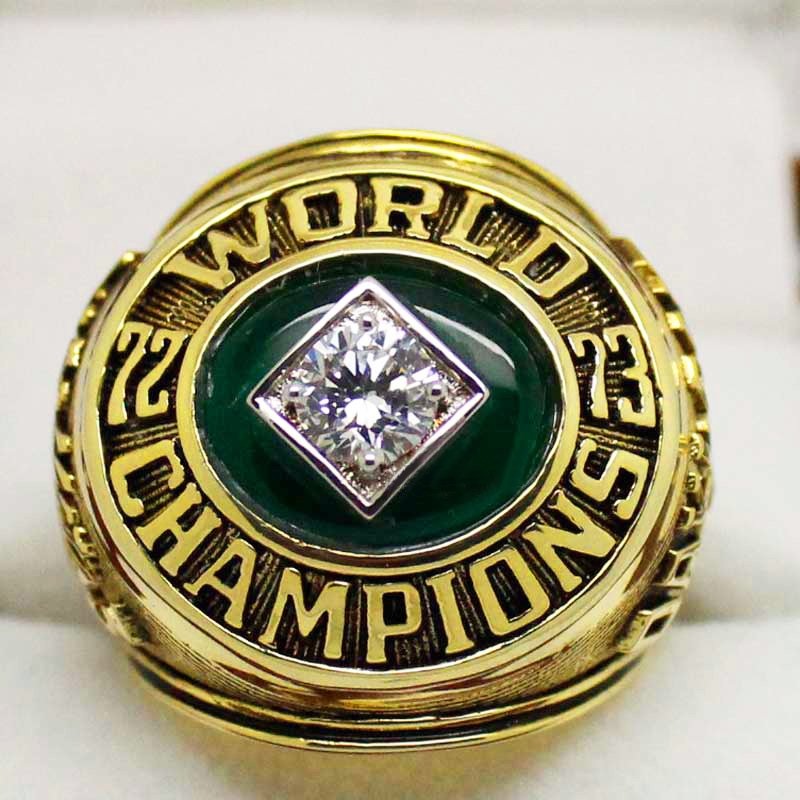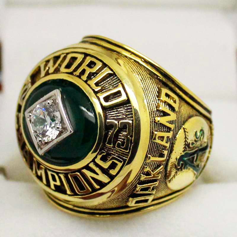 The Oakland Athletics won the World Series in 1973, which was their second consecutive championship victory. Here’s a description of what the 1973 Oakland Athletics World Championship ring might include: