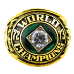- Material and Design: The championship ring would typically be made of 24karat electroplated over blass and adorned with cubic zirconia and possibly other gemstones. The design would likely incorporate the Athletics’ team colors (green, gold, and white), the Athletics’ logo (featuring an elephant), and baseball-related motifs such as bats, balls, or the World Series trophy.